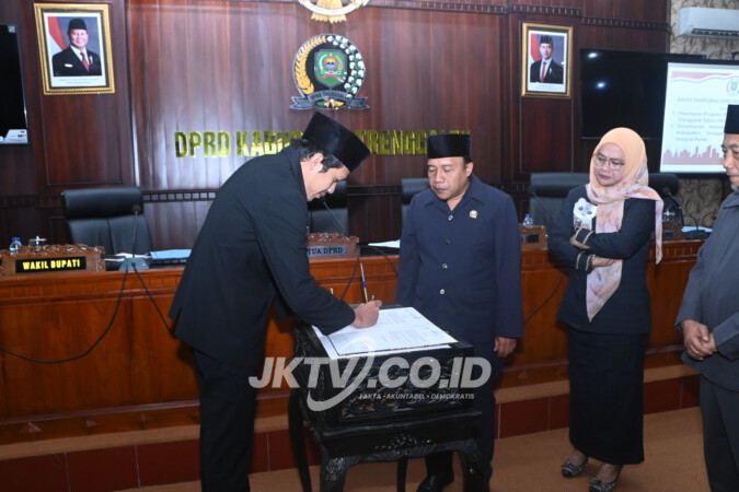 TRENGGALEK I jktv.co.id – Melalui sidang paripurna, DPRD Trenggalek mengesahkan Ranperda APBD Kabupaten Trenggalek tahun anggaran 2026 menjadi peraturan daerah. Dalam peraturan tersebut disepakati nominal anggaran belanja Kabupaten Trenggalek sebesar Rp. 1 triliun 935 miliar sekian.
