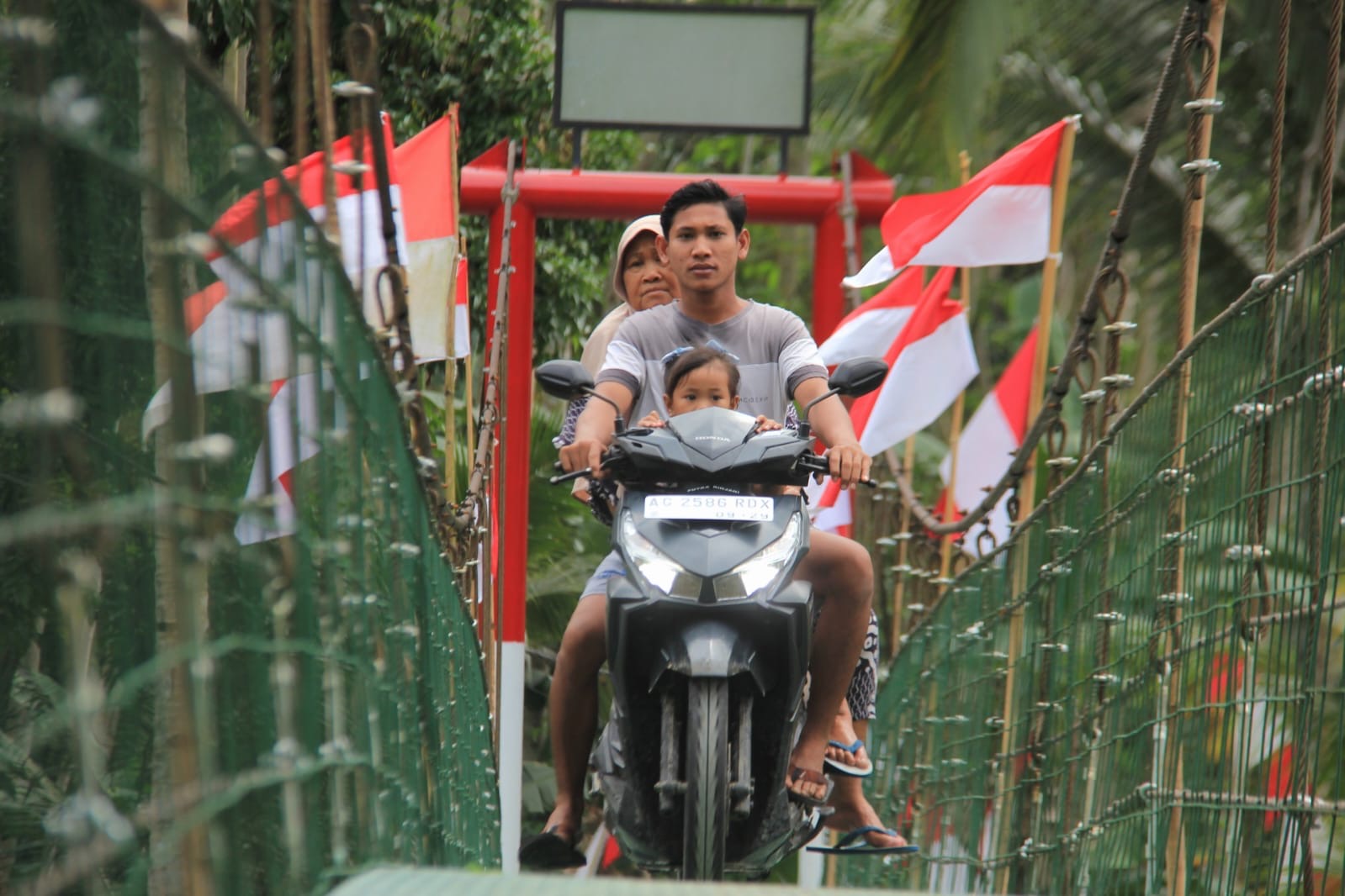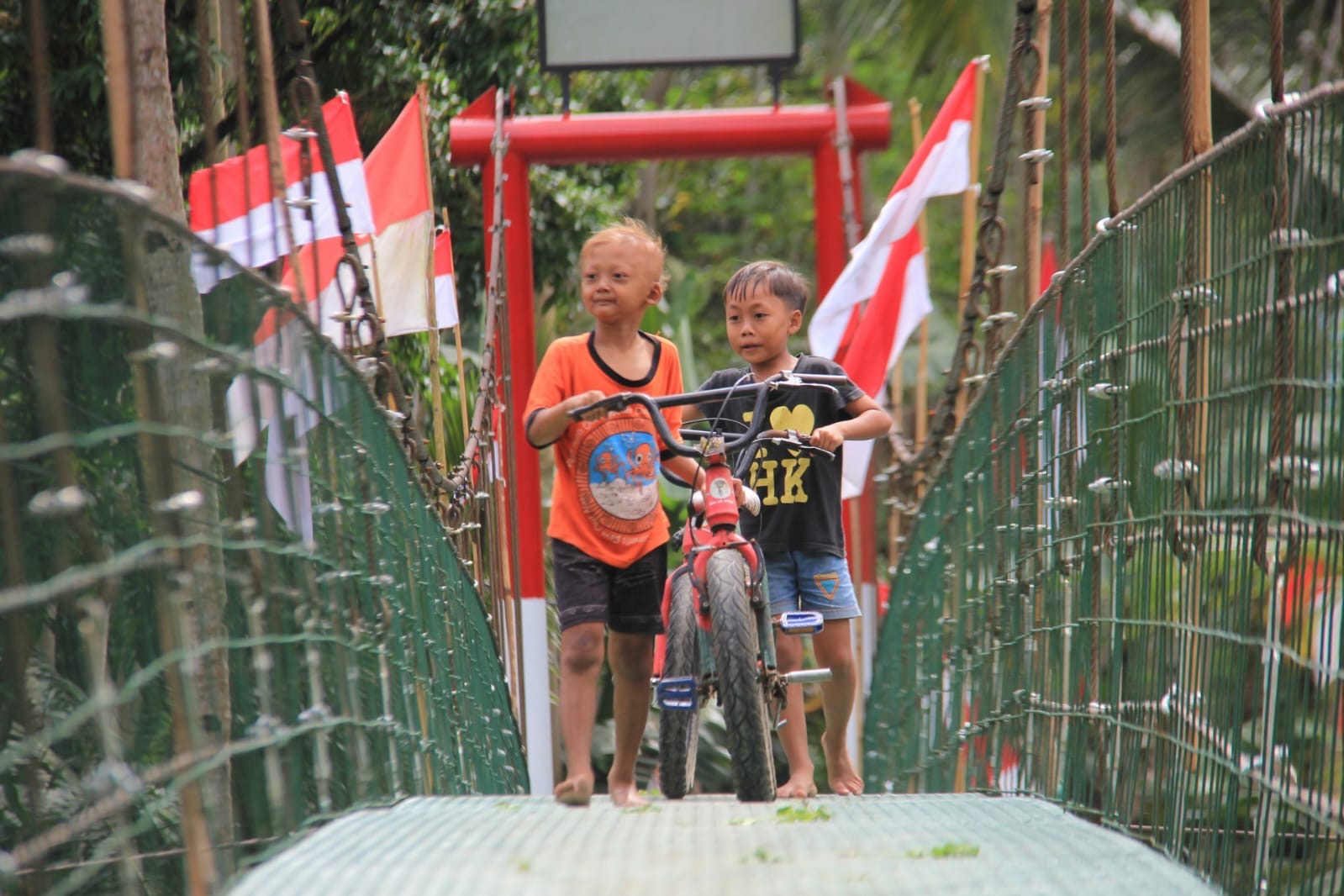 Tak hanya para warga, anak-anak sekolah juga terlihat tersenyum dan saling bercanda saat melangkah di atas papan jembatan. Bagi mereka, jembatan ini bukan sekadar infrastruktur, melainkan jalan menuju mimpi yang kini terasa lebih dekat.