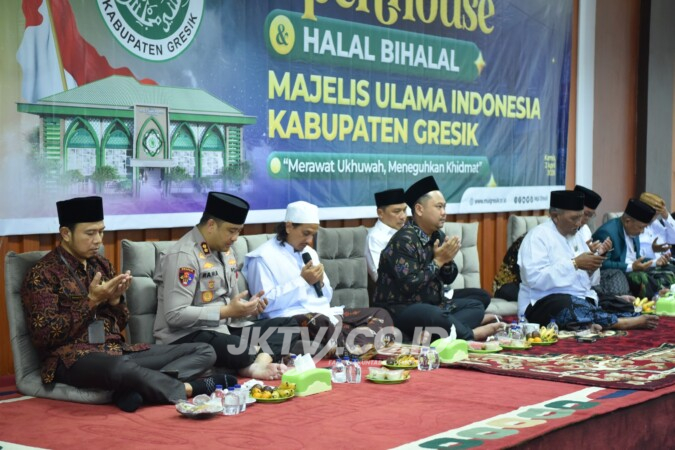 GRESIK I jktv.co.id – Suasana kebersamaan mewarnai kegiatan Halal Bihalal yang digelar bersama Majelis Ulama Indonesia (MUI) Kabupaten Gresik, Kamis (2/4/2026). Kegiatan yang berlangsung di Kantor MUI Gresik, Jalan Dr. Wahidin Sudirohusodo, Kecamatan Kebomas ini menjadi momentum penting dalam mempererat silaturahmi antara pemerintah daerah, aparat keamanan, serta para tokoh agama.